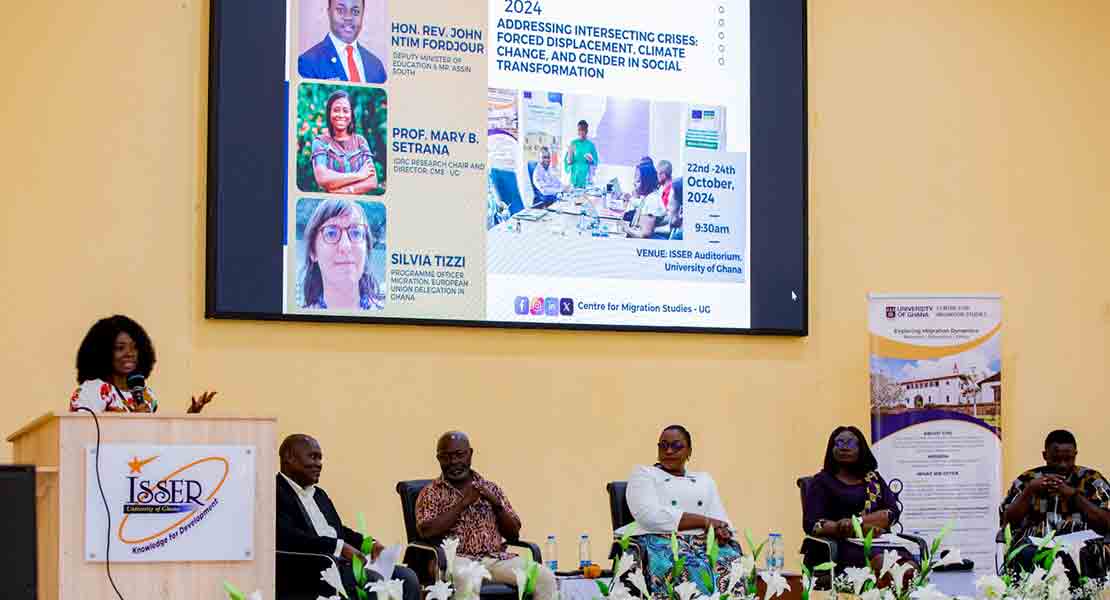 For her part, IDRC Research Chair on Forced Displacement and Director of the Centre for Migration Studies, Prof. Mary B. Setrana, reiterated the critical impact of climate crises on Ghana's vulnerable communities, noting, “Our project, Resilience Against Climate Change-Social Transformation Research and Policy Advocacy (REACH-STR), addressed the intersecting challenges of forced displacement, climate change and gender by generating crucial data and insights for policy action.”